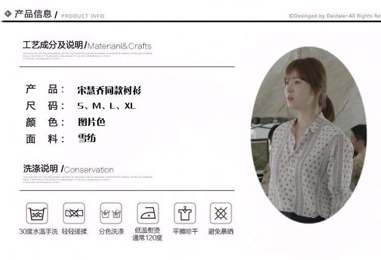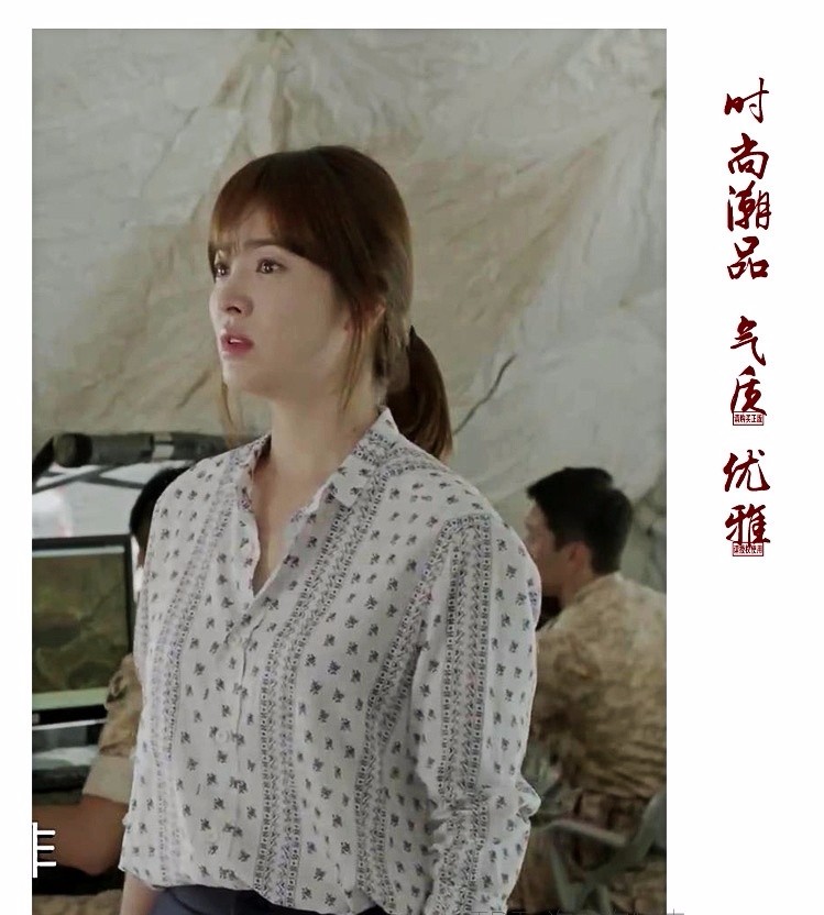 #太陽的後裔# 宋慧喬姜暮煙韓版印花碎花襯衫
