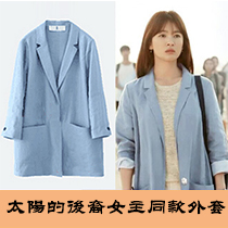#太陽的後裔# 姜暮煙同款淺藍色棉麻小西裝外套