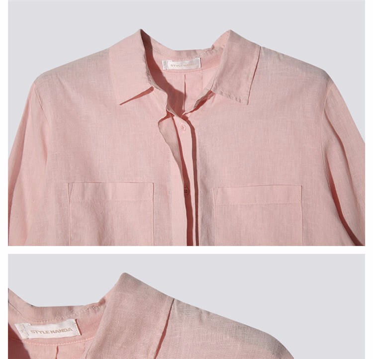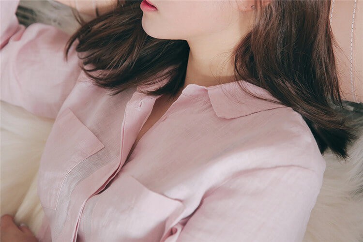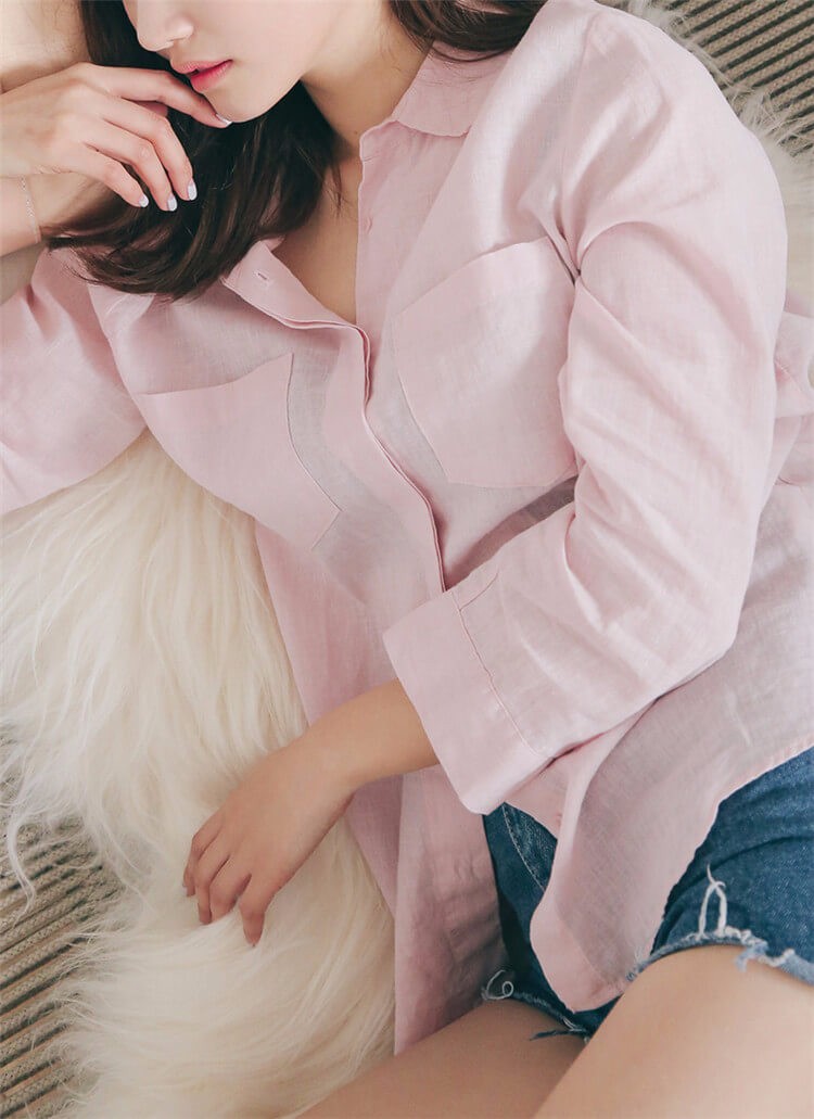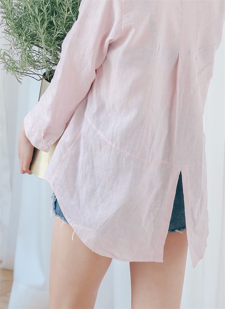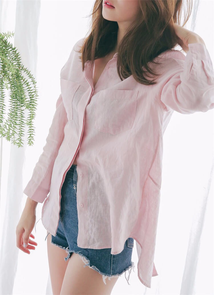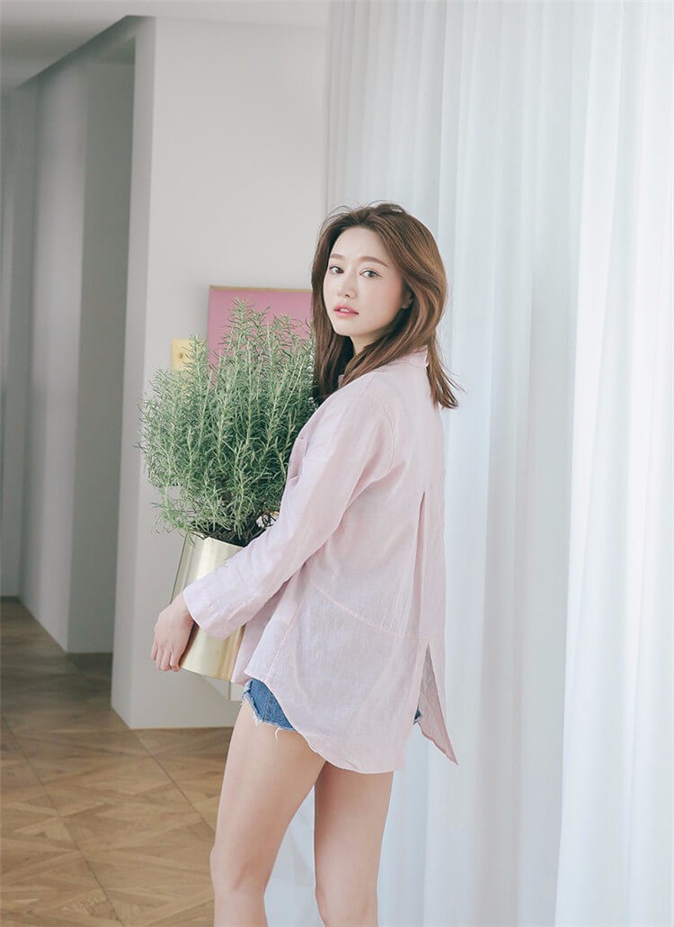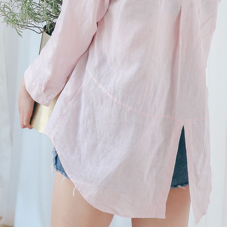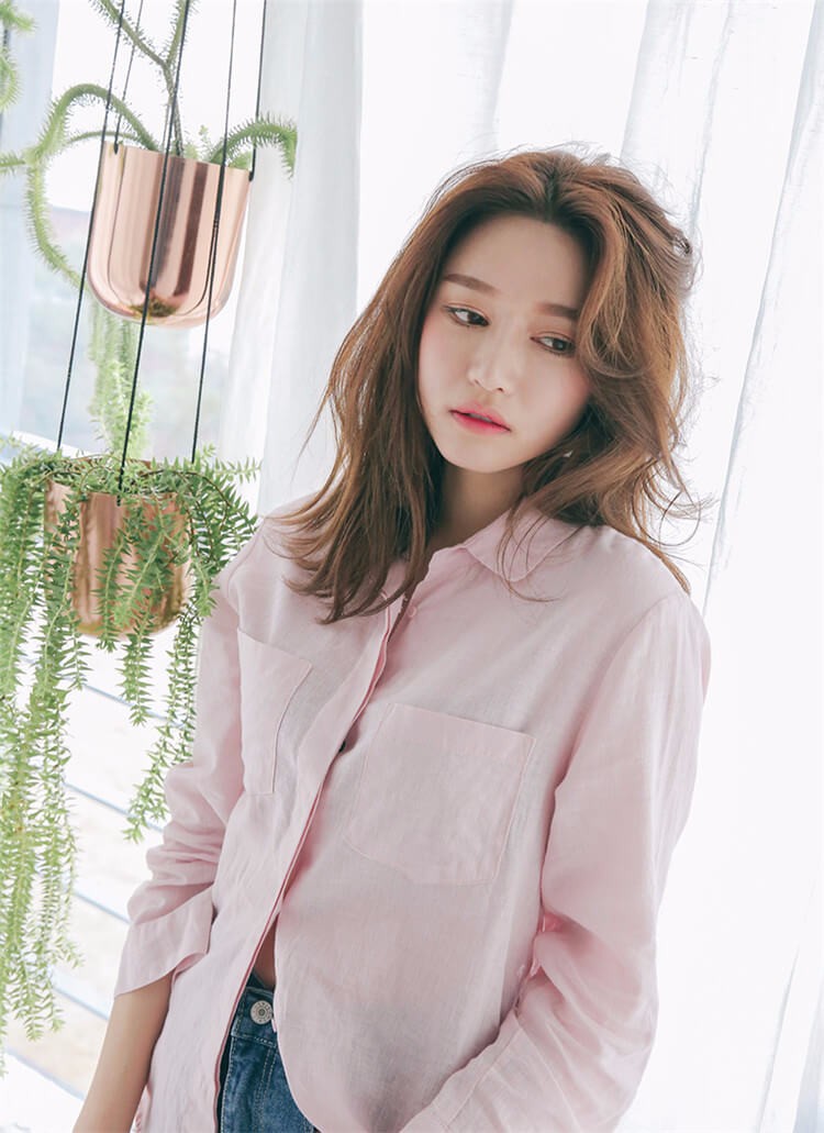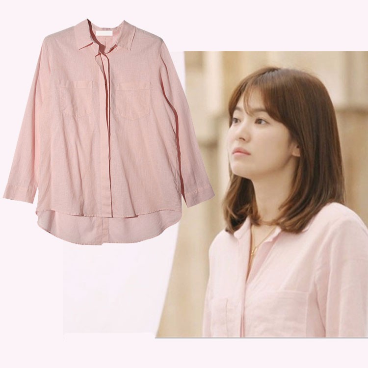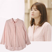 #太陽的後裔# 宋慧喬款粉色棉麻長袖襯衫