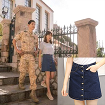 #太陽的後裔# 同款深藍六扣牛仔半身裙