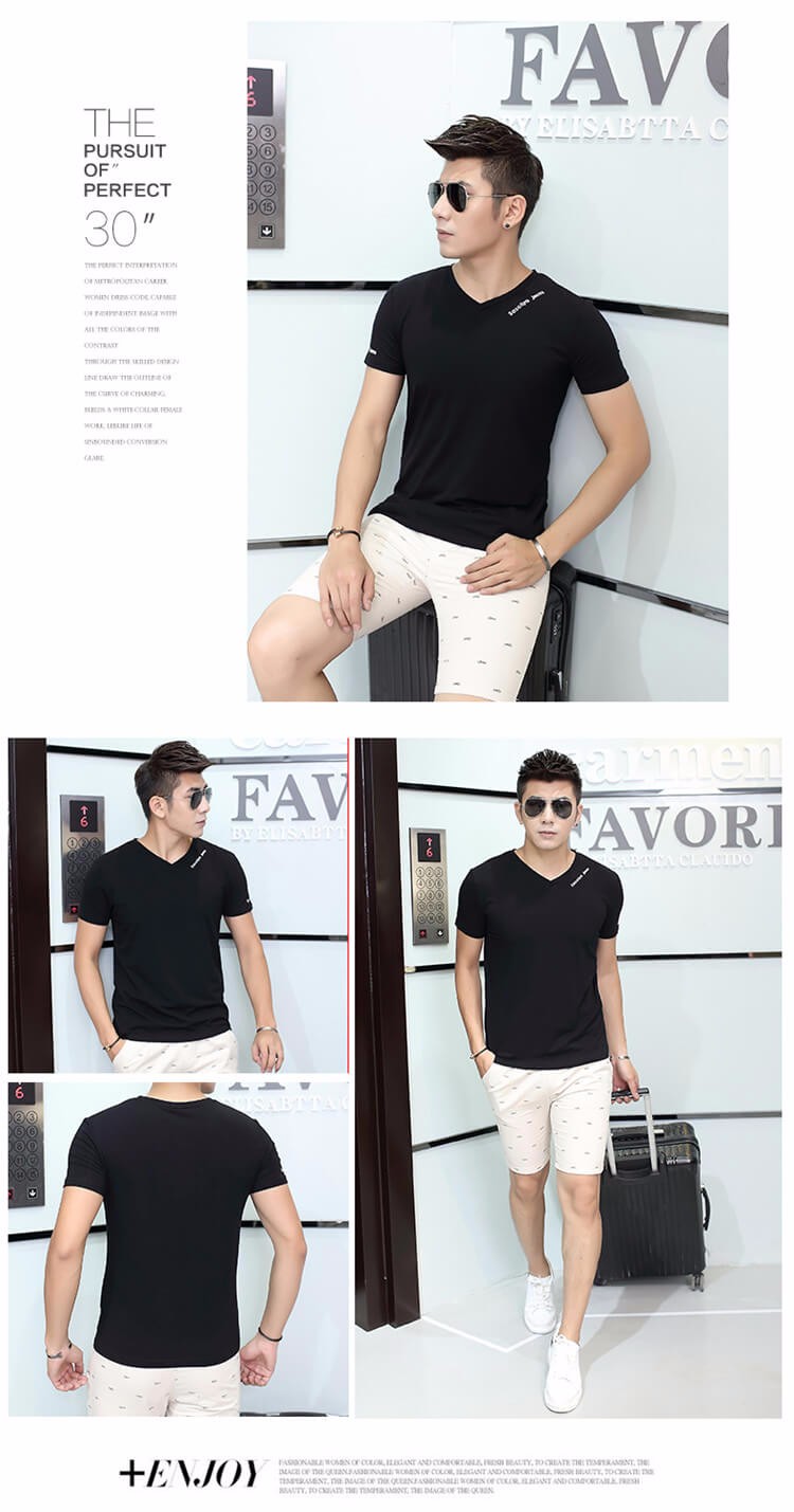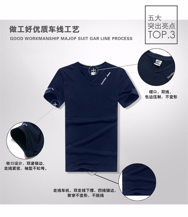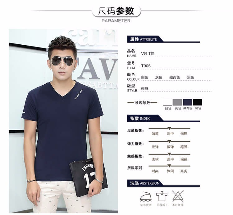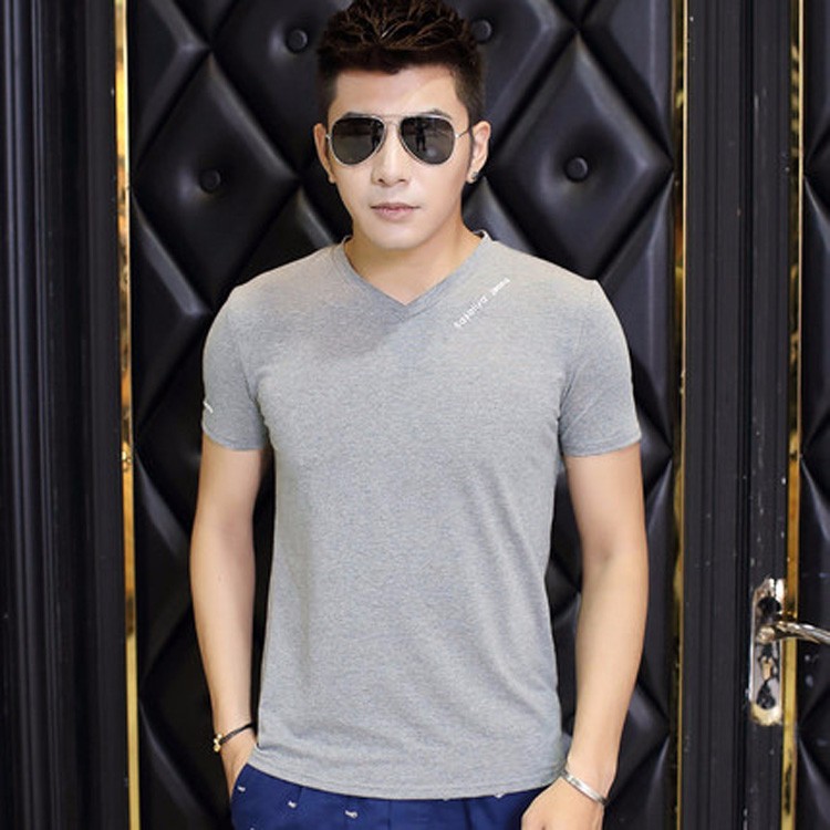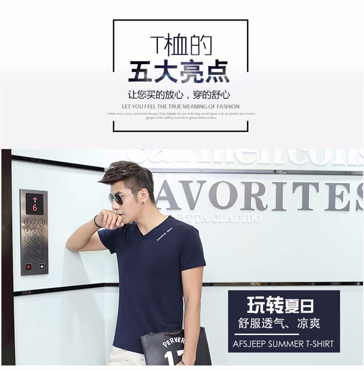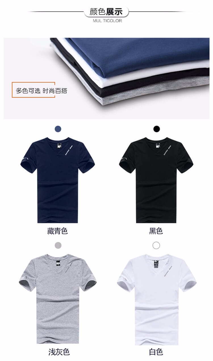夏季男士短袖T恤 純色v領修身半袖