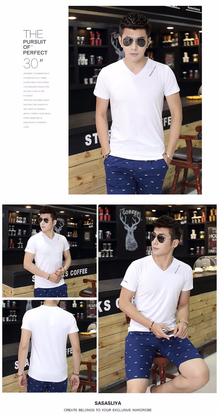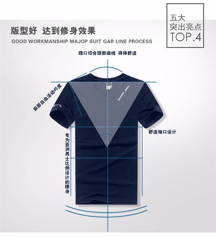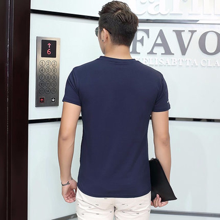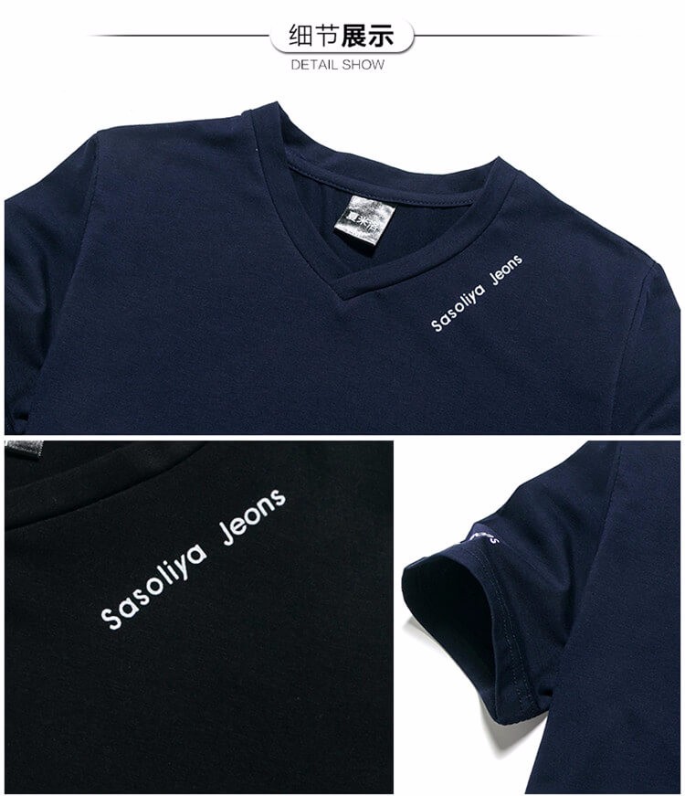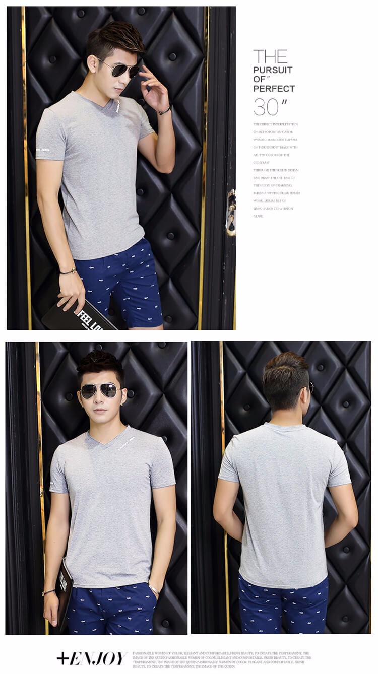 夏季男士短袖T恤 純色v領修身半袖